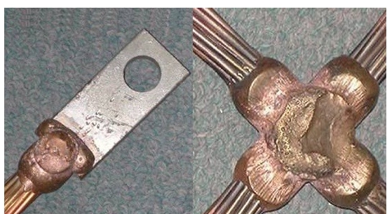 所有的連接均采用搭接焊。銅帶的搭接長度為銅帶寬度的兩倍,并應(yīng)焊三個(gè)棱邊。