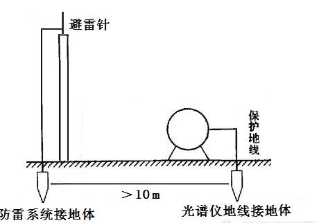 1.3 直讀光譜儀接地線不能靠近建筑物防雷系統(tǒng)的接地體,所設(shè)的接地體距離不應(yīng)小于20米。